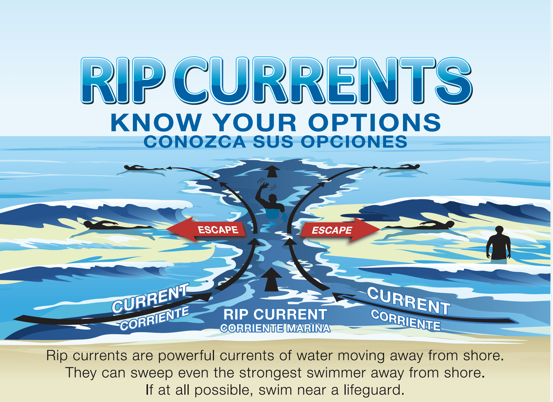 • Swim near a lifeguard. / Nade cerca de un salvavidas.